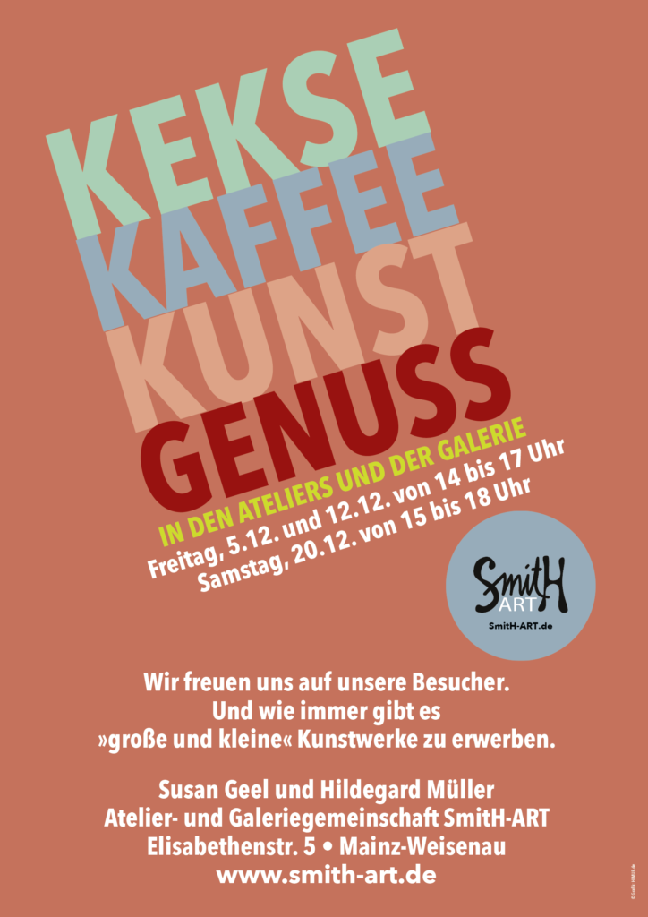 KUNST schauen bei einer Tasse Kaffee und leckeren Keksen, mit uns ins Gespräch kommen und vielleicht dabei auch das ein oder andere große oder kleine (Kunst-)Geschenk finden …